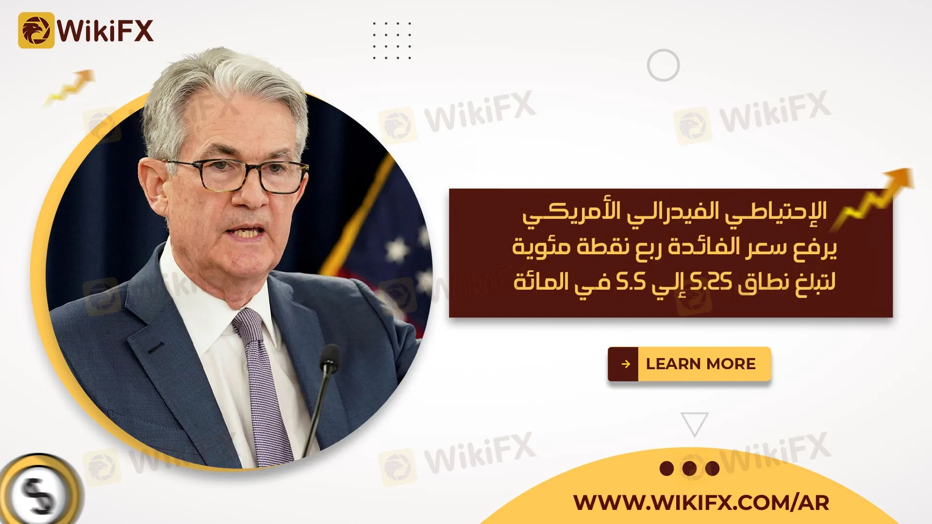 أصدر الفيدرالي الأمريكي قرار الفائدة الخامس له هذا العام وقرار رفع أسعار الفائدة بـ 25 نقطة أساس لتسجل 5.50% الآن. وتعد هذه الفائدة الأعلى منذ 31 يناير 2001 أي منذ 22 عامًا.