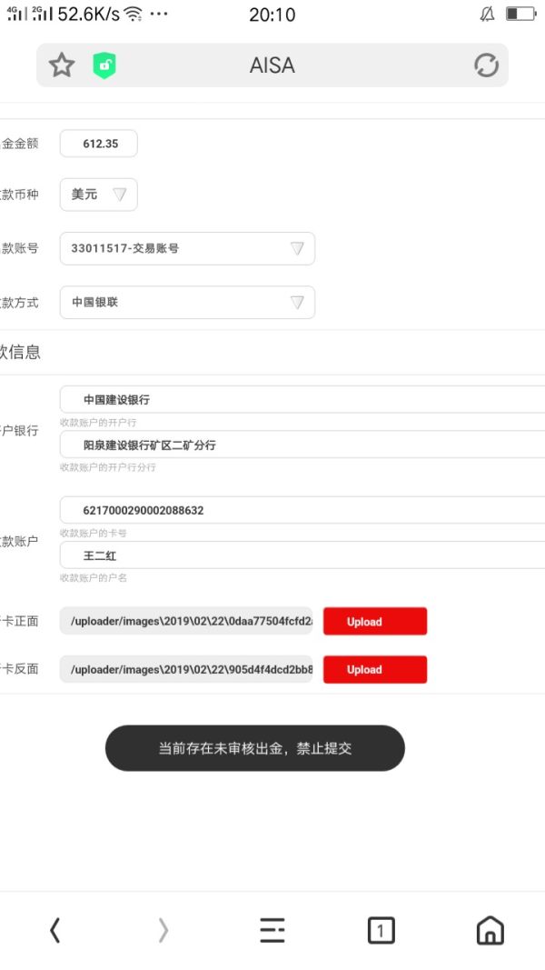 Unable to withdraw money