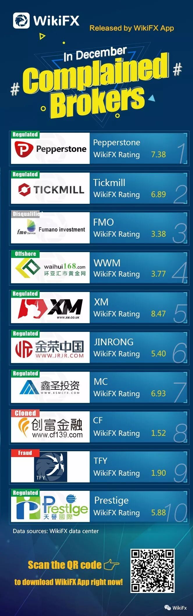 Following is the chart, top 10 brokers with most complaints in December, released by WikiFX, being reference for investors to invest.