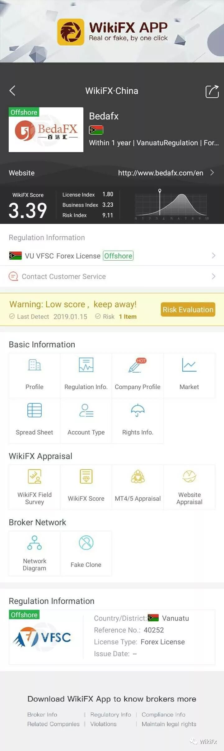 With low WikiFX rating, Bedafx has been marked by WikiFX as “offshore regulation”, having two risk warnings. So it is easy for investors to steer clear of risk by searching the information of brokers before investing.