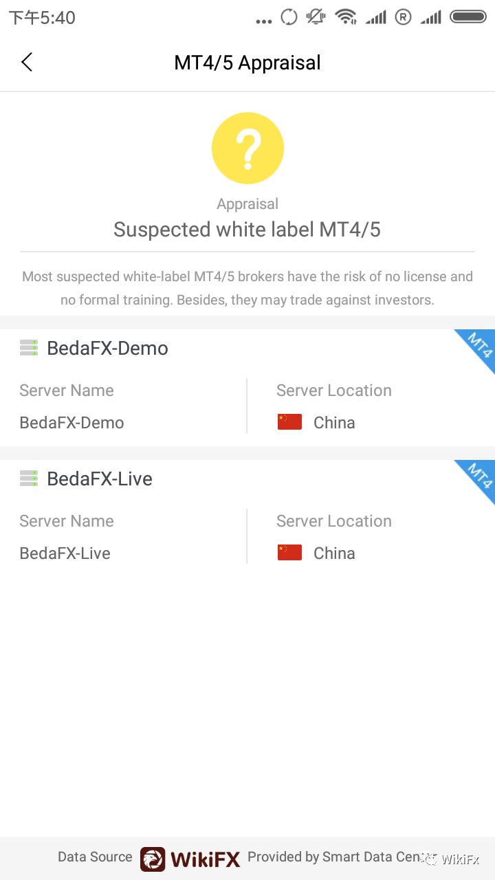 According to identification, Bedafx uses white-label MT4 trading software, with the server set up in China. Moreover, the white-label broker has certain risk due to its low cost of investment.