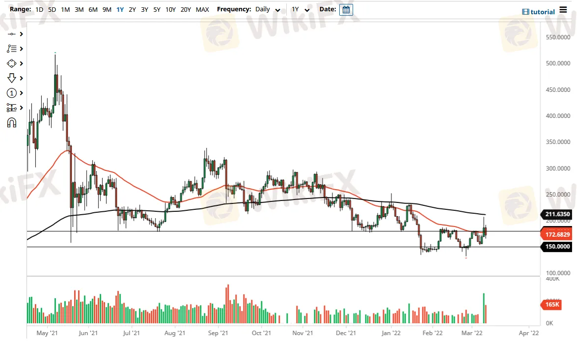 That being said, if we break down below the bottom of the candlestick for the Thursday session, then it opens up a move down to the $150 level. That is an area that has been rock solid as far as support is concerned, so I do not think that we break down below there right away. In fact, I think it would take a little bit of effort to get below the $140 level.