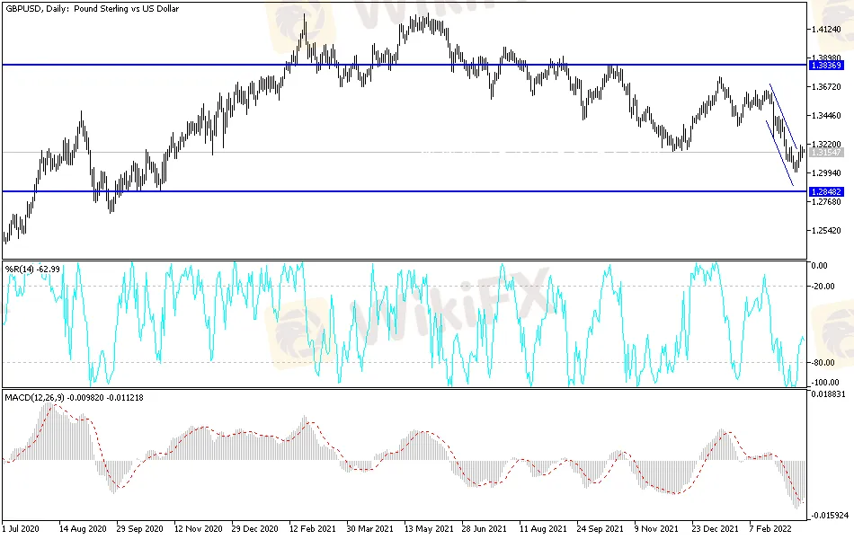 According to the technical analysis of the pair: According to the chart of the daily time frame, the price of the GBP/USD currency pair is still trying to break the general bearish trend, and it may succeed in that in the event of a rebound and breaking the top of the resistance 1.3350. Until that happens, the general trend will remain bearish, and the war will continue. Russia and its consequences for the future of the global economic recovery will support the bears to move towards psychological support 1.3000 again.