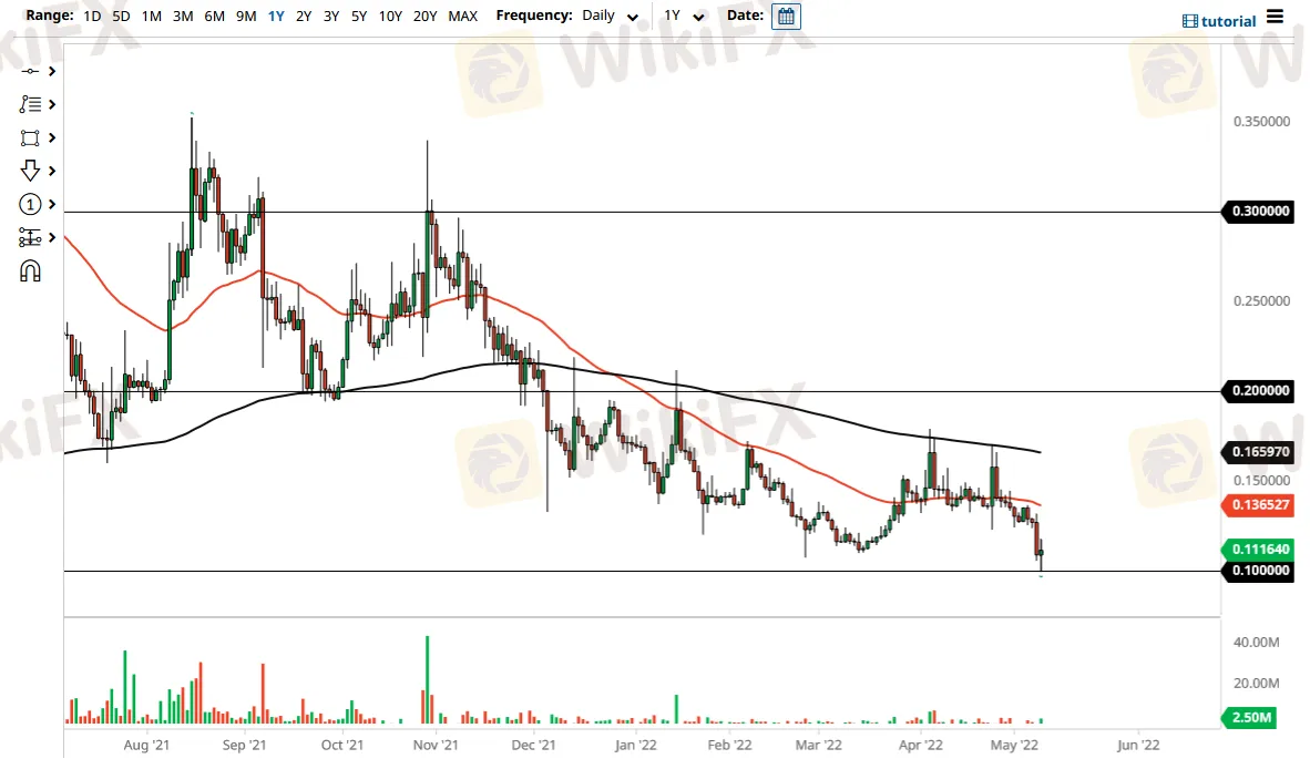 Abstract:The Dogecoin market fell on Tuesday to reach the $0.10 level, an area that would obviously attract a certain amount of attention, as these markets do tend to pay close attention to these round numbers. That being said, we have bounced from that area, which is a sign of the market trying to stabilize.