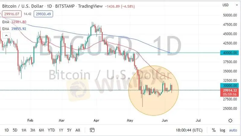 Abstract:The Bitcoin market pulled back during the session on Tuesday to reach the $30,000 level yet again. This is a market that I think will continue to be drawn to that level like a magnet, because there’s no real reason to think that the crypto markets are going to change quite drastically. After all, the market is likely to see a lot of FUD out there, as the rest of the crypto markets have major issues. While it is not necessarily Bitcoin itself that has the issues, Bitcoin is the first place that people either go into or out of when it comes to crypto.