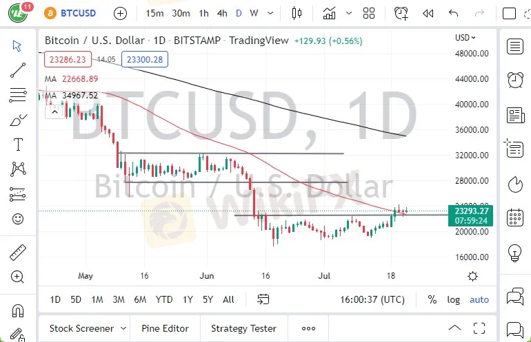If we were to break above the top of the candlestick for the Friday session, we may grind higher, perhaps reaching the $28,000 level. The $20,000 level is the bottom of a previous consolidation, which extends all the way to the $32,000 level. I think testing this area is probably the best-case scenario for Bitcoin, which should only open up the possibility of further downward pressure.