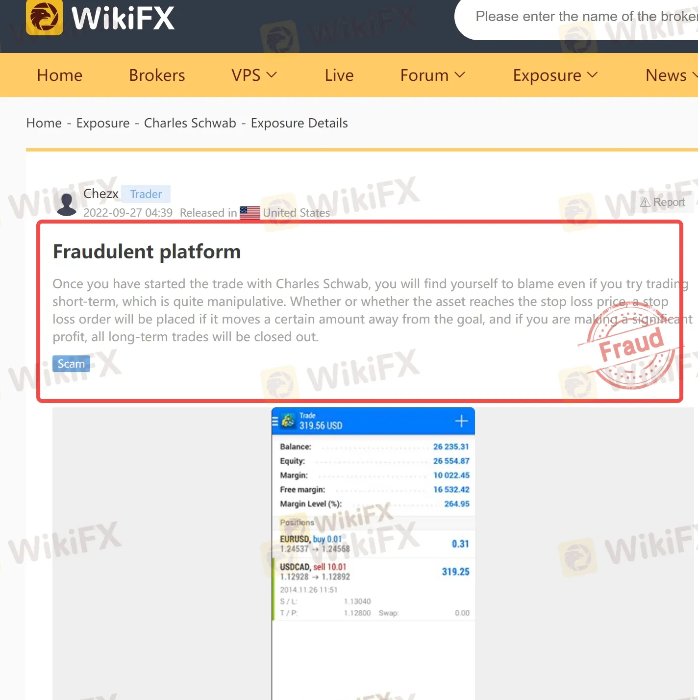 Just now, WikiFX received another exposure from an investor in the United States, who said that the trader could not withdraw money for various reasons with Charles Schwab platform. Here is a screenshot of his remarks.