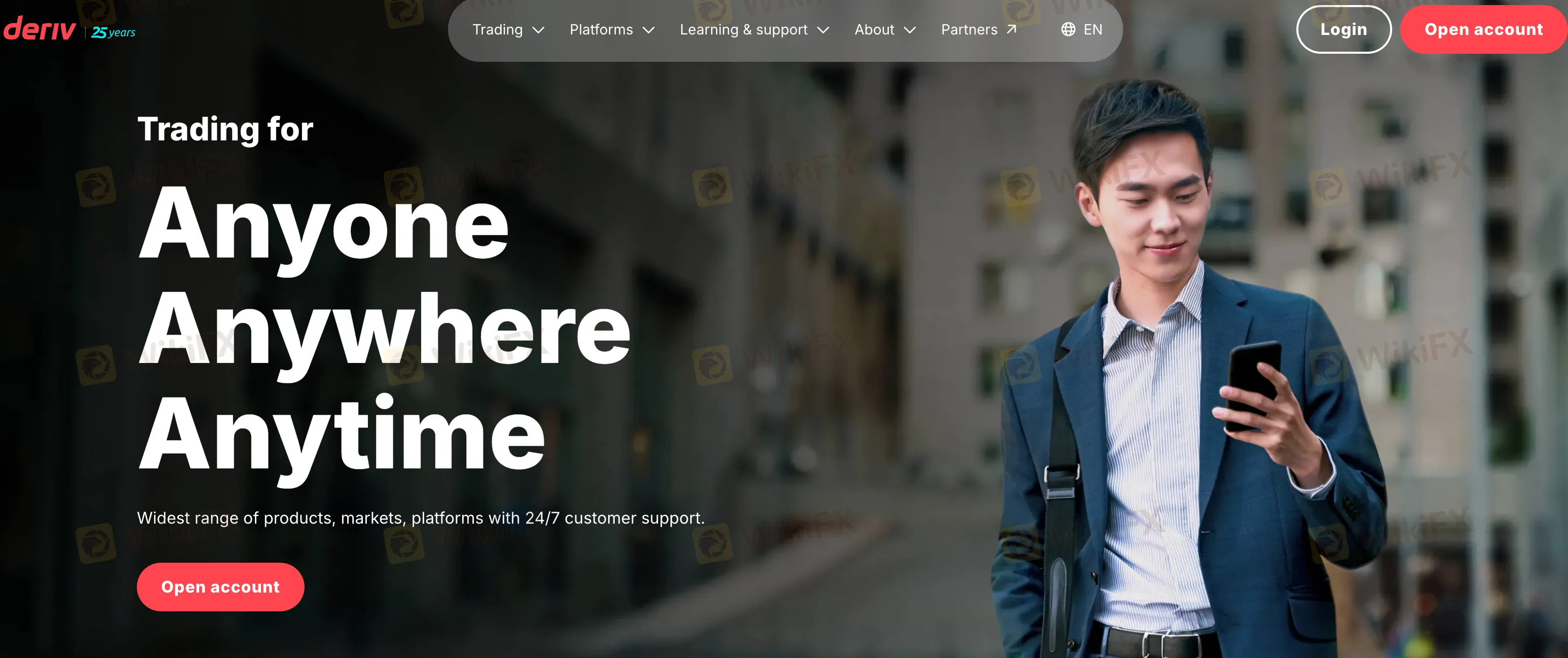 | Deposit & Withdrawal Options | Credit & debit cards, Online banking, Mobile Payments, E-wallets, Cryptocurrencies, On-ramp/Off-ramp, Voucher, Deriv P2P |