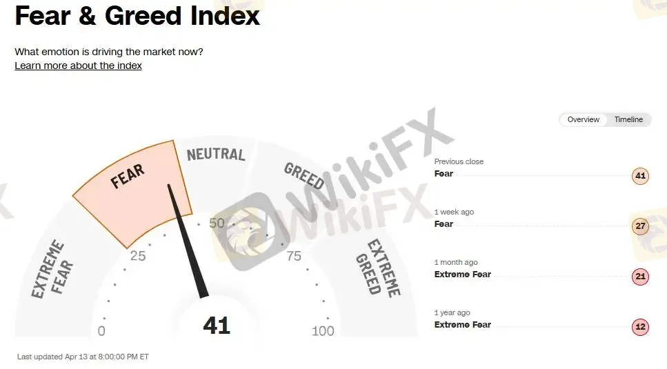 The Fear & Greed Index is a key gauge of investor sentiment, reflecting whether market participants are driven by fear or greed. The latest reading stands at 41 (Fear), compared with the previous level of 31, indicating that risk-off sentiment remains elevated.