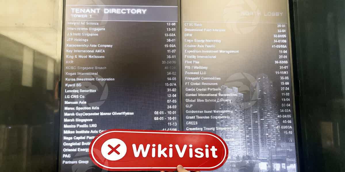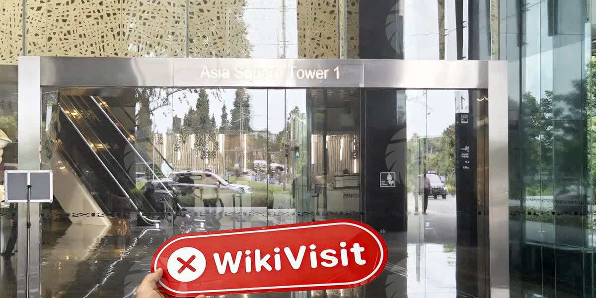 The inspection team successfully arrived at Asia Square Tower 1, which is one of the most luxurious office buildings in Singapore, surrounded by a bustling environment and a strong commercial atmosphere. The team captured a panoramic view of the building, but no Dxtrade company signage or related information was found on the exterior.