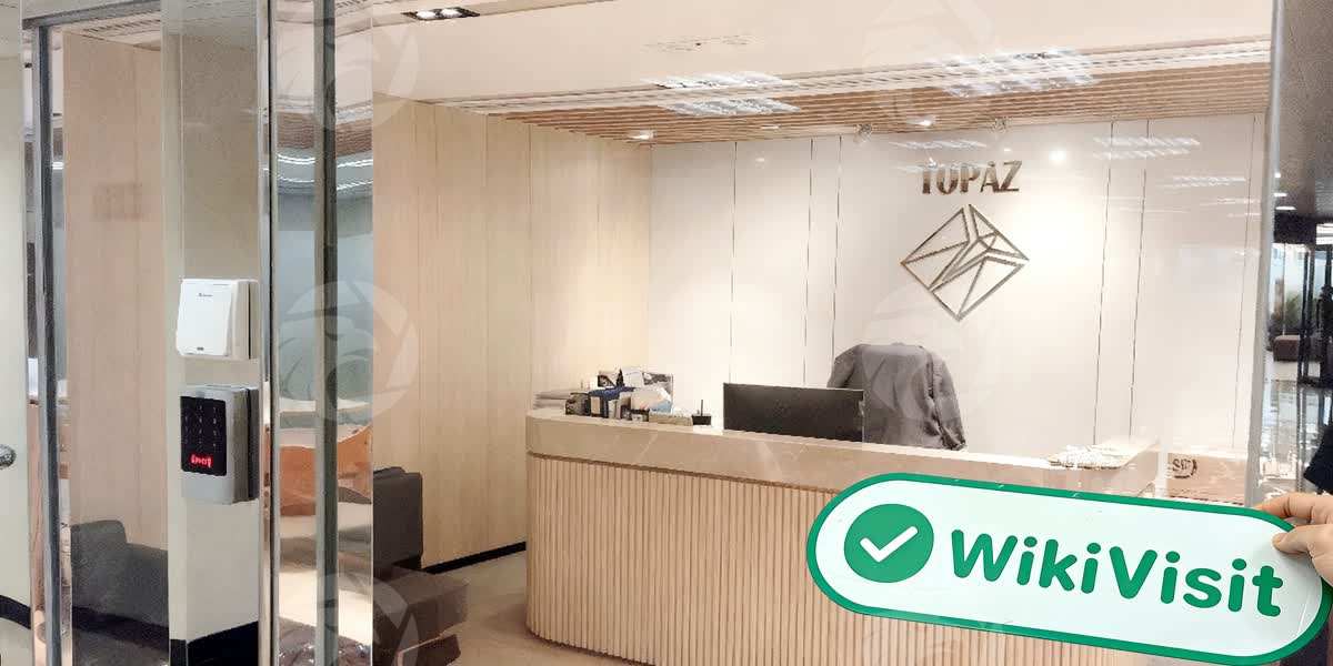 Upon arriving at the target floor, the 27th floor, the field survey personnel noticed clear signage for Topaz's office area. Due to reasons such as lack of prior appointment, the surveyors were unable to enter the premises. However, they were able to photograph the reception desk and its logo, confirming that the office is not a shared workspace.