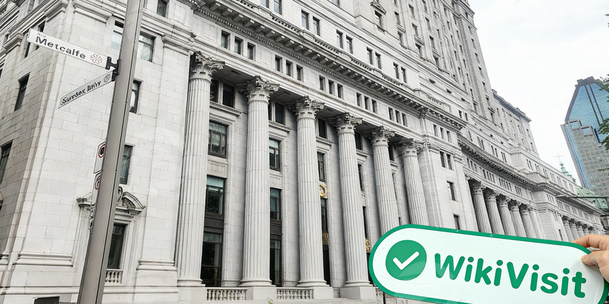El personal de la encuesta llegó al destino de la encuesta actual basándose en la dirección anterior. El objeto de esta encuesta fue el Banco Nacional de Canadá, que es el sexto banco comercial más grande de Canadá, con sede en Quebec, y el banco más grande de la provincia.NBF La oficina está en el famoso edificio Sun Life, que era el edificio más grande del Imperio Británico en ese momento. Hay una gran cantidad de compañías de seguros, bancos y otras compañías financieras que operan aquí.