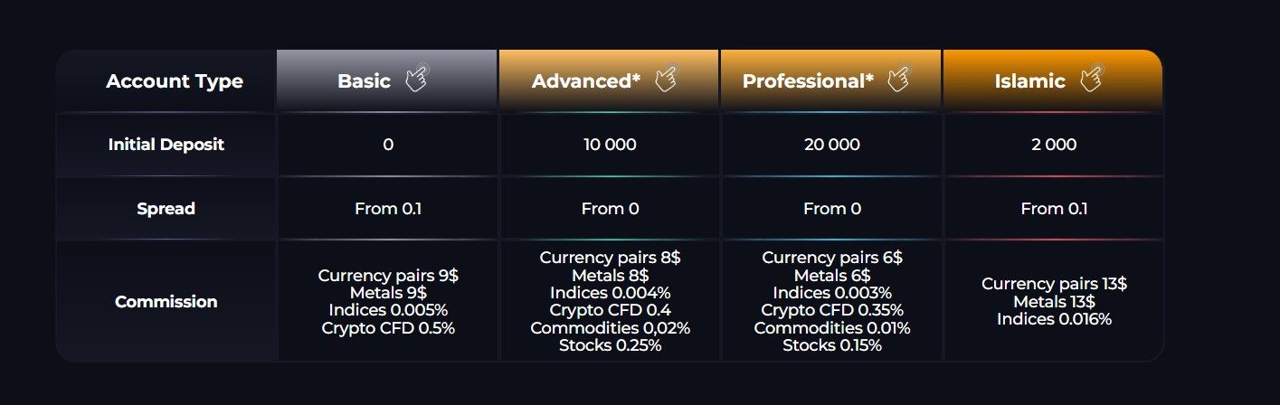 Ang pagpili ng uri ng account, paggamit ng mga bonus o pagtanggi ay nakasalalay sa iyo. Ang personal na kabinet ay simple at maginhawa, at ang suportang teknikal ay palaging available. Maaaring subaybayan ang mga transaksyon mula sa maraming device. Mayroong malawak na pagpipilian ng mga instrumento para sa mga nais pangunahing magtrabaho sa mga internasyonal na merkado.