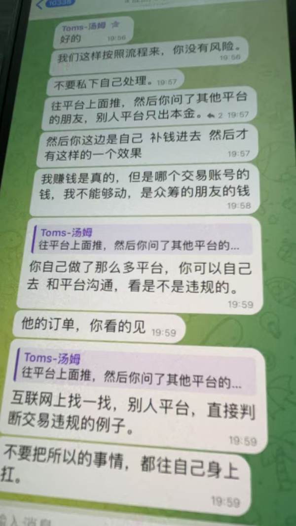 在该平台玩了一段时间,赚了3万美金,代理说我赚多了,要我亏一部分,否则不好出金!后来亏了近一万美金,该平台还是不给我出金,当天在没通知的情况下,偷偷把我帐号关闭。给客服沟通,他们就耍无赖,说我违规,每单不足60秒,是秒单,频繁交易,不算数,本金也不给退。我想问,当我亏钱的时候,为什么不说我是秒单,不是平繁交易!后来在我要报警的时候,他们让我写保证,不爆光他们的所作所为,给我退本金,补偿600美金!从没见过如此不要脸的平台!希望大家引以为戒,不要上当受骗!
