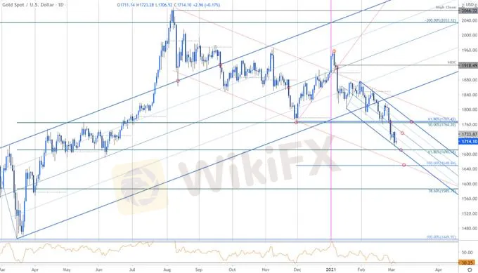 Mga Balita sa Pananalapi sa WikiFX (05 Marso 2021) - Gintong Presyo ng Presyo: Ang Gold Breakdown Plunges sa Downtrend Support