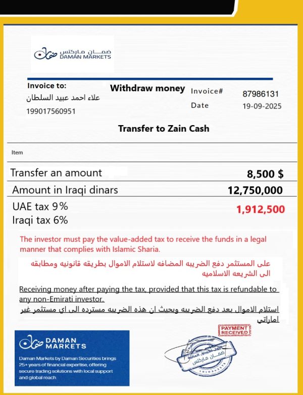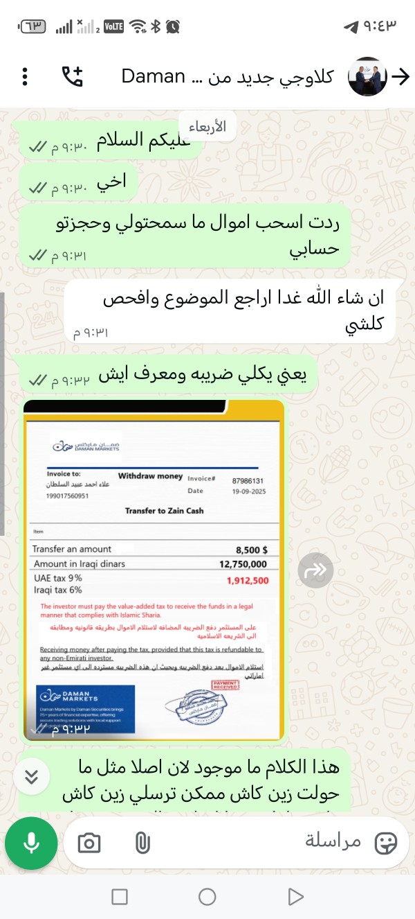 العراق البصرة عندما حاولت السحب تم طلب مبلغ ضرائب مرتفع ثم تم حضري من قبلهم ارسلت حتى طريقة الإيداع انها منصه للنصب