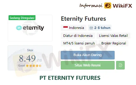 Sejak didirikan pada tahun 2003, Eternity Futures telah berkembang menjadi broker di Indonesia yang menyediakan layanan transaksi forex, index futures, CFD, dan produk komoditas. Eternity adalah perusahaan yang diakui secara hukum yang beroperasi di yurisdiksi Indonesia, di bawah lisensi dan pengawasan BAPPEBTI.