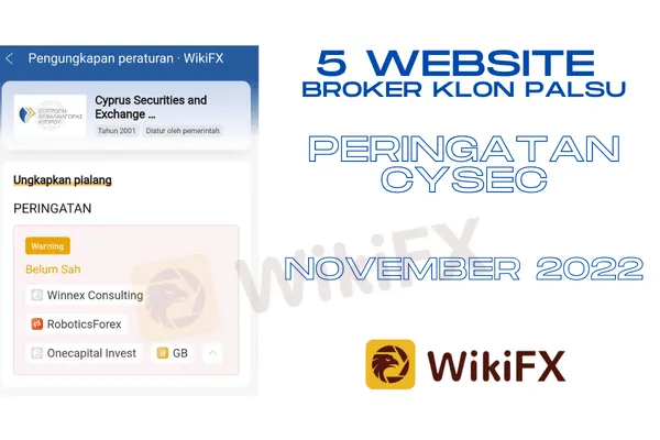 Di bulan November 2022, CySEC telah menerbitkan pemberitaan resmi tentang terdeteksinya 5 website yang bukan milik entitas atau broker yang telah diberikan otorisasi untuk penyediaan layanan investasi dan/atau kinerja aktivitas investasi. Tentunya informasi seperti ini amatlah penting bagi para trader atau investor agar platform klon palsu tersebut dapat dihindari.