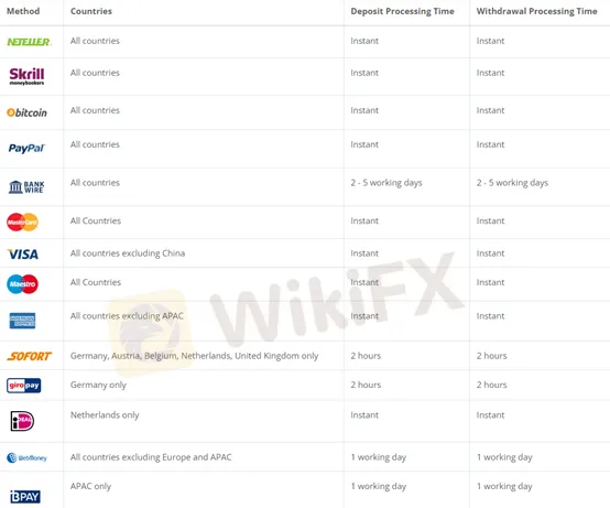 Blockexfunziona con un'ampia selezione di processori di pagamento tra cui portafogli crittografici, skrill, neteller, mastercard, visa, amerrican express, ideal, webmoney, bpay, discover, western union per consentire ai suoi clienti di effettuare depositi e prelievi. questa casa di brokeraggio afferma di non addebitare alcuna commissione di deposito. il pagamento effettuato tramite le opzioni e-wallet può essere ricevuto immediatamente e sono necessari fino a 5 giorni lavorativi affinché i fondi appaiano sul tuo conto tramite bonifico bancario.