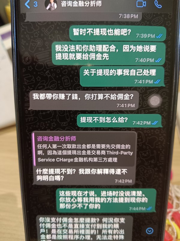 进场了以后提不到现还要恐吓,还说赚了钱不付佣金什么的。那所谓的“程骗子”还给什么低级“Lisa秘书”来给我们解决提现问题跟一大堆狗废话。千万要小心别上他当了
