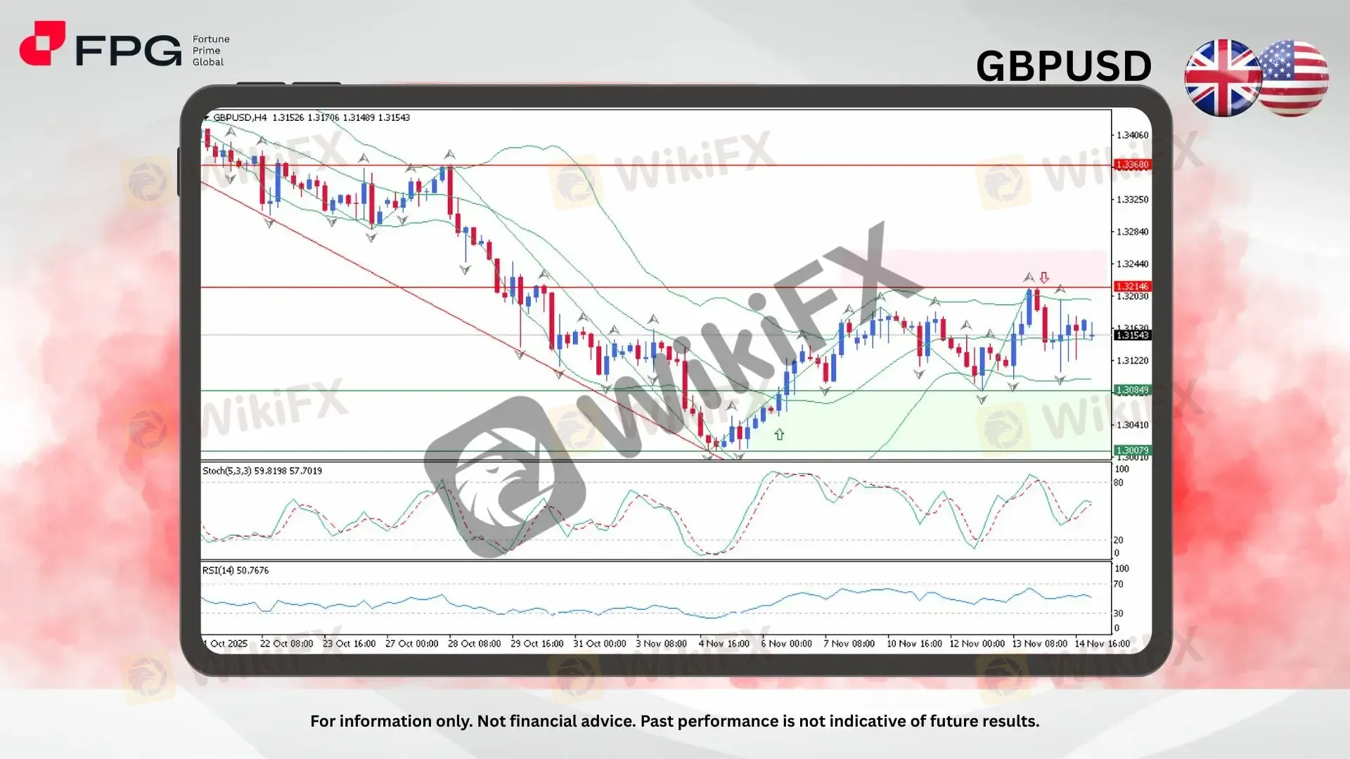 1. Current Position: GBPUSD is trading around 1.3150, moving within a horizontal consolidation zone after recovering from its recent low near 1.3007.