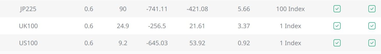 指数:このプラットフォームでは、S&P 500、ダウ・ジョーンズ工業株価平均、FTSE 100など、さまざまなグローバル株式市場指数での取引が可能です。