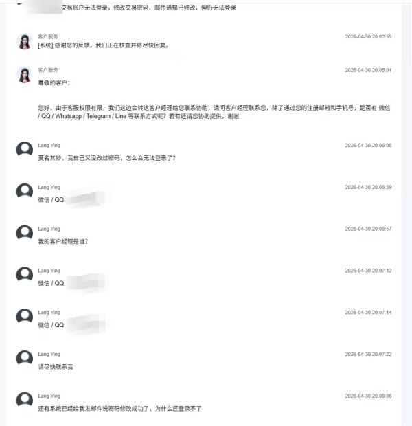 德璞资本已经交易了两个多月的一个账户,今天早晨还正常,晚上查看了一下发现莫名其妙无法登录交易账户,改了交易密码也无法登录,似乎是被冻结了,联系平台客服无果,2月底还有一个德普的ECN账户由于滑点巨大导致爆仓联系平台客服也至今未解决。