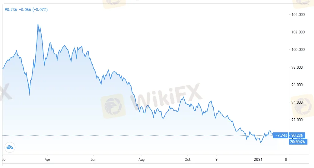 2021年には、ドル安の現象が既に危機感を齎らしているが、この現象が変わる可能性を示している指標も出されています。 複数の指標が、既に米ドルが売られ過ぎのレベルであり、2018年2月に設定された88.253の最低値に到達した後、リバウンドの可能性が高いことを示しています。