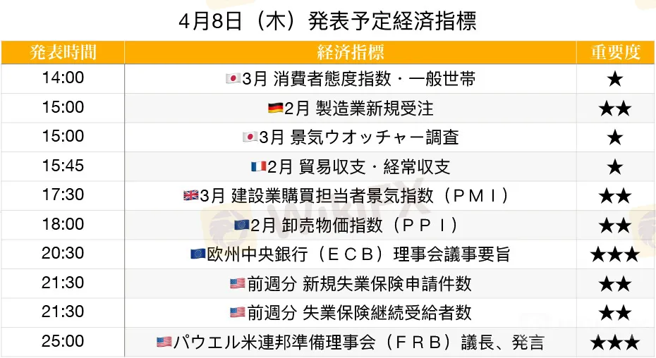 概要:【経済指標】 4月8日に発表予定の指標一覧