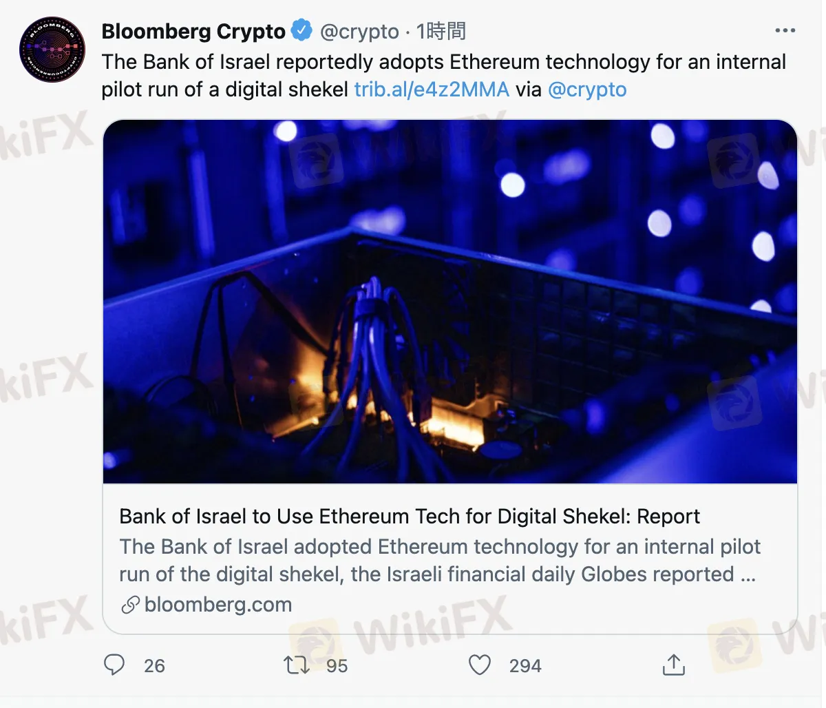 ブルームバーグにより、イスラエル銀行(中央銀行)が通貨シェケルのデジタルバージョンを発行するにイーサリアム技術を使用することを判明しました。