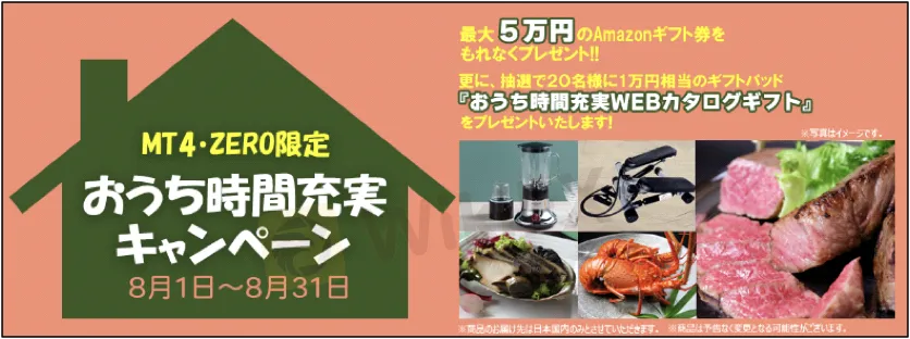 8月1日から外為ファイネストにておうち時間充実キャンペーンを開始。期間内に1,000万通貨以上の決済取引を行うと最大5万円相当のAmazonギフト券(Eメールタイプ)を受け取ることが可能なキャッシュバックキャンペーン。