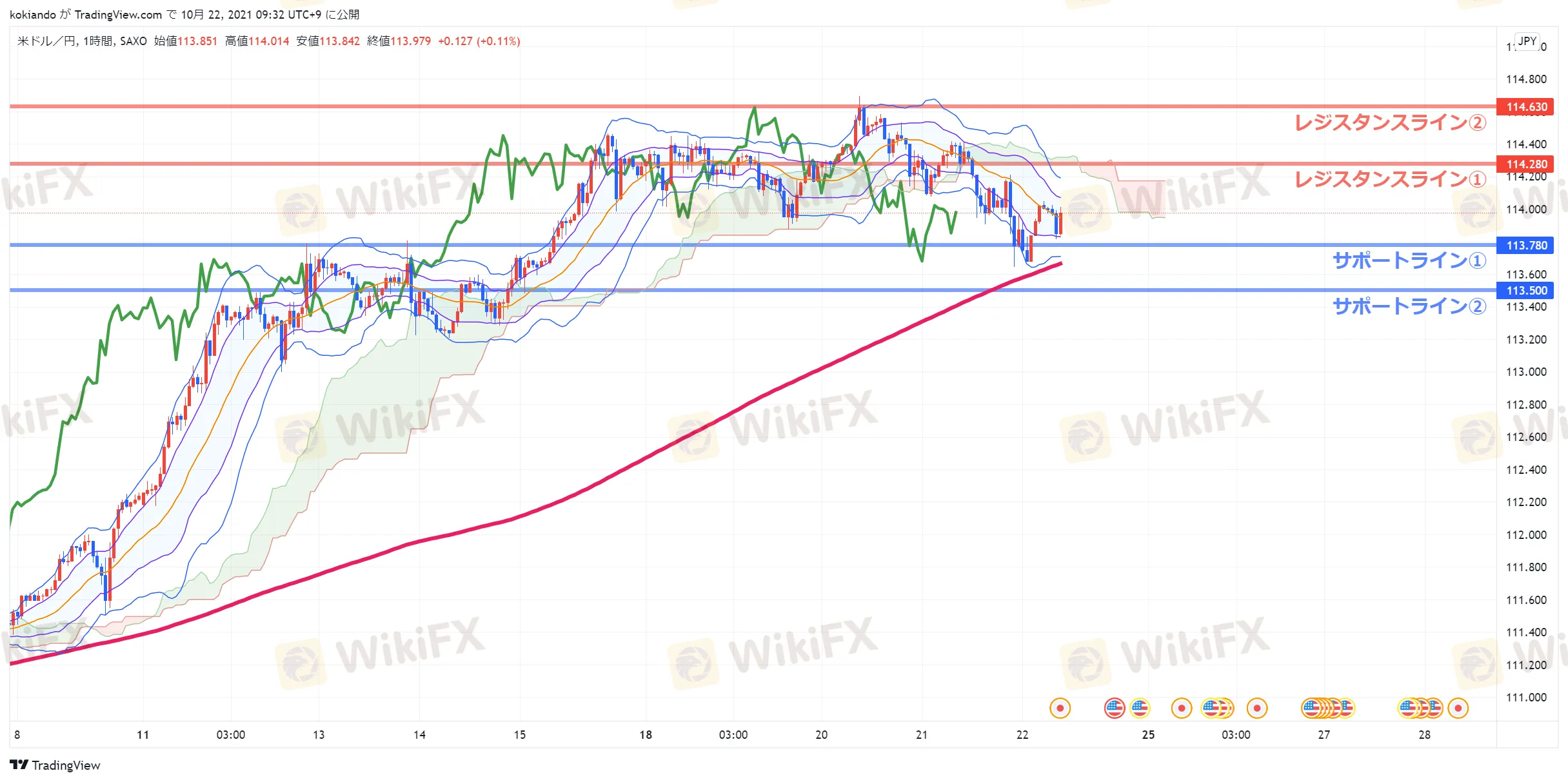 サポートライン:113.500、113.780