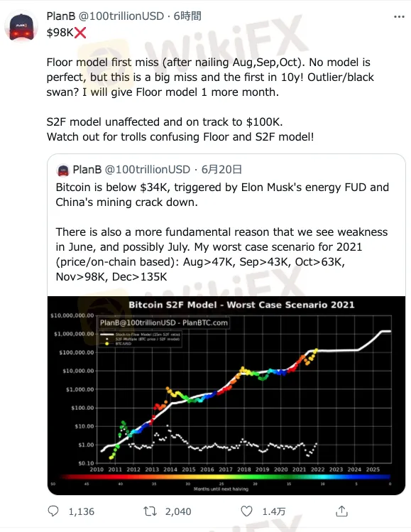 アナリストのPlanB氏は、11月にFloorモデルが10年ぶりに大きなミスを犯したとツイートした。同氏はツイッターで「完璧なモデルは存在しないので、来月以降もFloorモデルの有効性を検証していく」と解析しました。