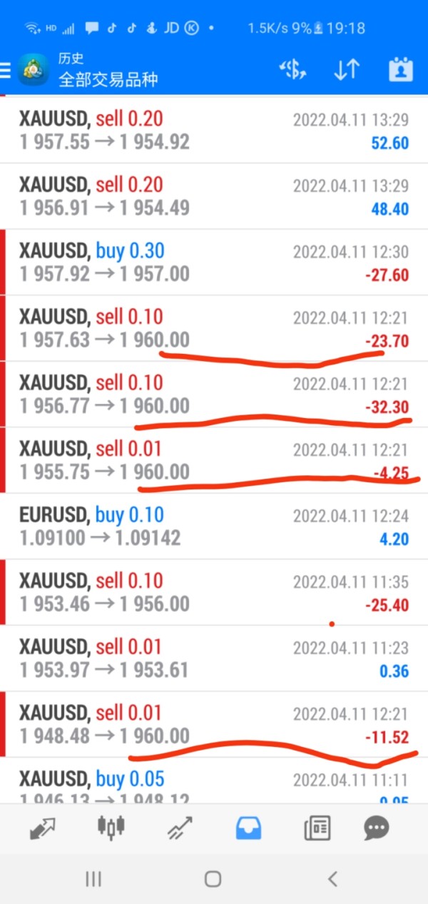 这是我做的四个单子 卖价与买价 我都已经在图片上显示了 我已经提供了我的证据,时间点我已经注明