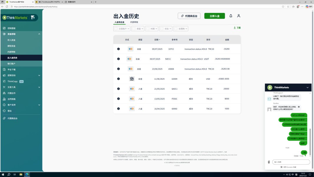 今年4~5月份入金了30000USD,在2025年6月10日,由于单边行情,我的账户产生了收益,随之不久后我收到一封来自thinkmarkets平台的邮件,声称我参与了非法活动,并通知我他们将调整账户余额并关闭我的账户!他们不仅仅扣除了我全部利润43,685USD,我尝试出金本金30000USD三个月以来一直不予处理!三个月以来我多次联系智汇平台索要我的本金和利润,该平台都是置之不理,没有任何反应!我甚至投诉了监管,他们是黑平台,根本不会被合法监管,大家千万不要来这个平台!!!!