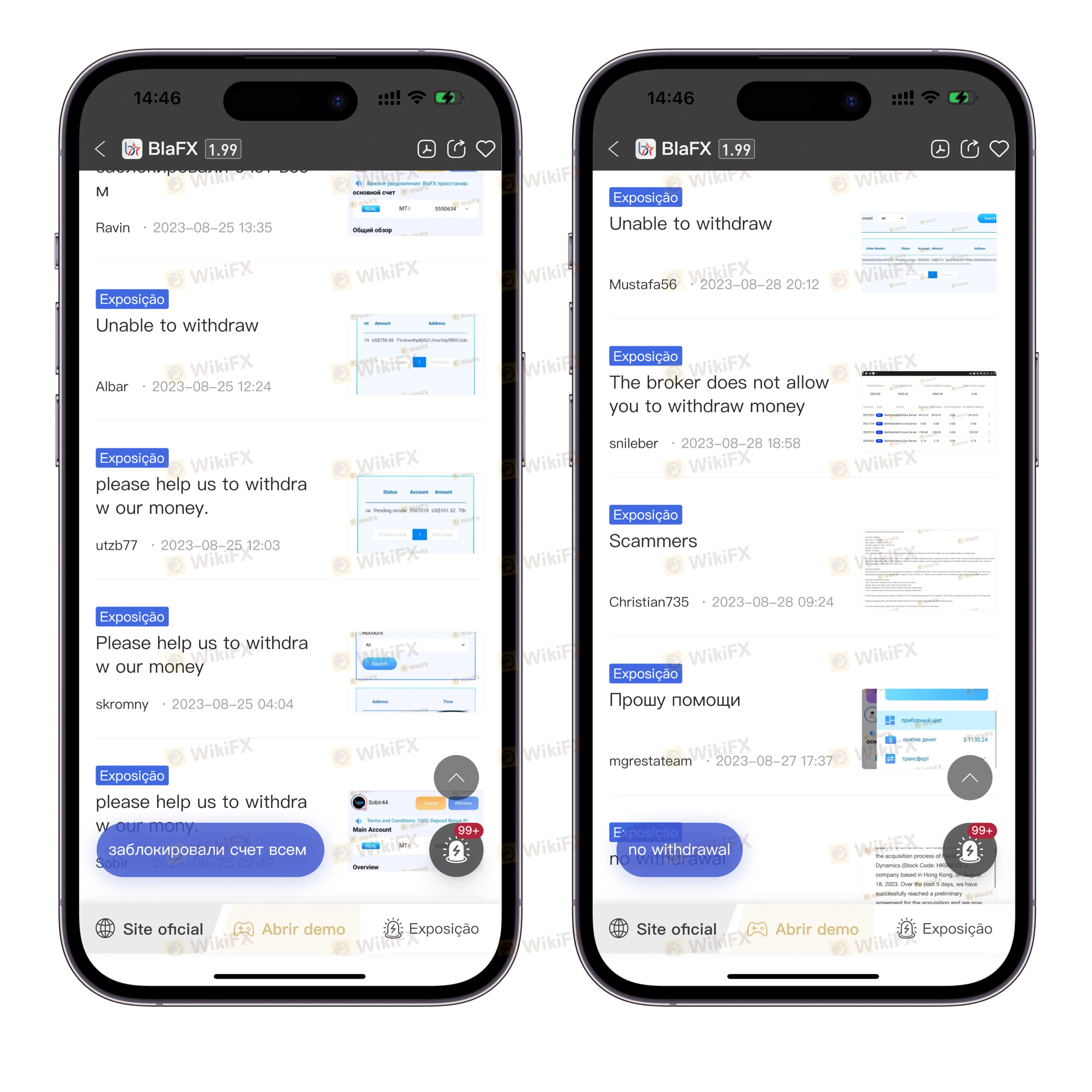 Na verdade, essa não é a primeira vez que a plataforma BlaFX enfrenta reclamações de saques impossíveis. A BlaFX frequentemente impede os clientes de sacar fundos com razões não razoáveis, e os investidores devem estar atentos a esses problemas.