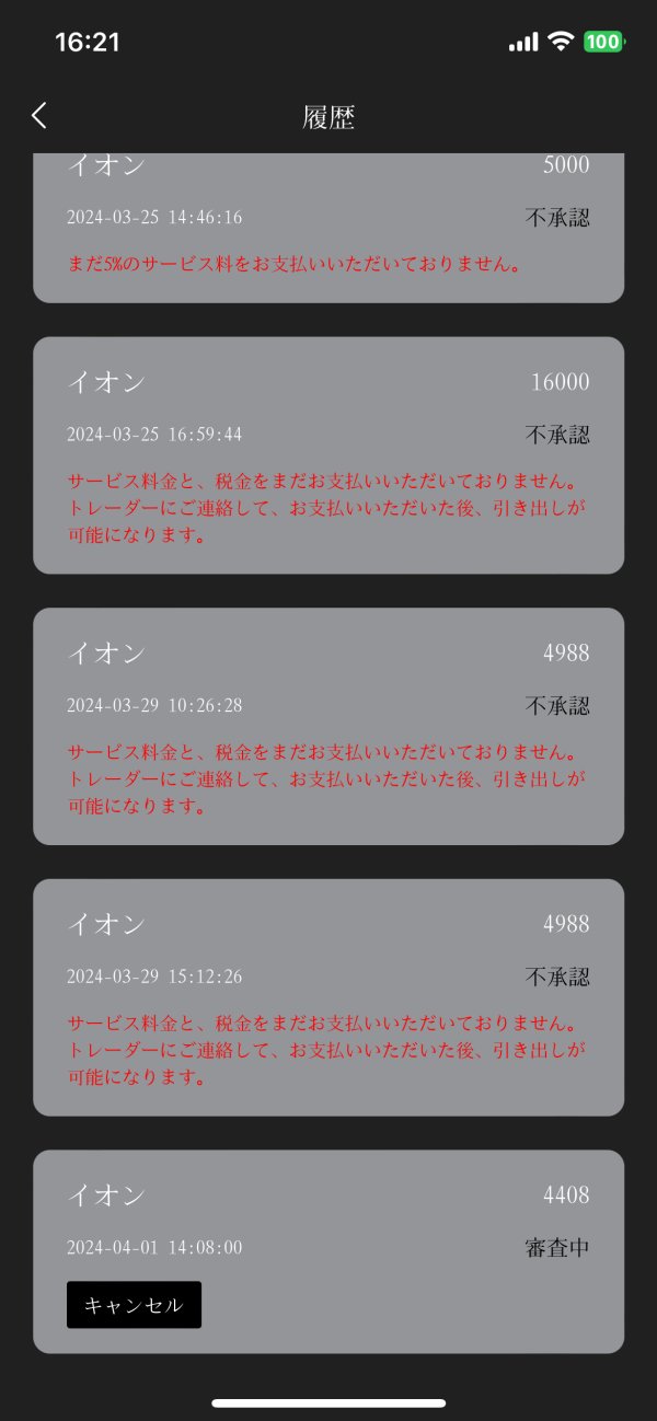 大塚和磨と名乗る男 度々日本語が変 とにかくいつまでにお金振り込むのかを気にしてる 出金申請してもあちらで操作してるのか出金出来ない いきなり税金払えと言われる 詐欺師集団 4月1日出金申請。 未だに審査中。 問合せしても完全無視 詐欺師だと思われる