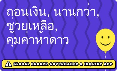 - มีการตรวจสอบแล้วว่าโบรกเกอร์ของท่านไม่มีการควบคุมดูแลอย่างมีประสิทธิภาพ โปรดใช้วิจารณญาณในการตัดสินใจ และระวังความเสี่ยงที่อาจจะเกิดขึ้น