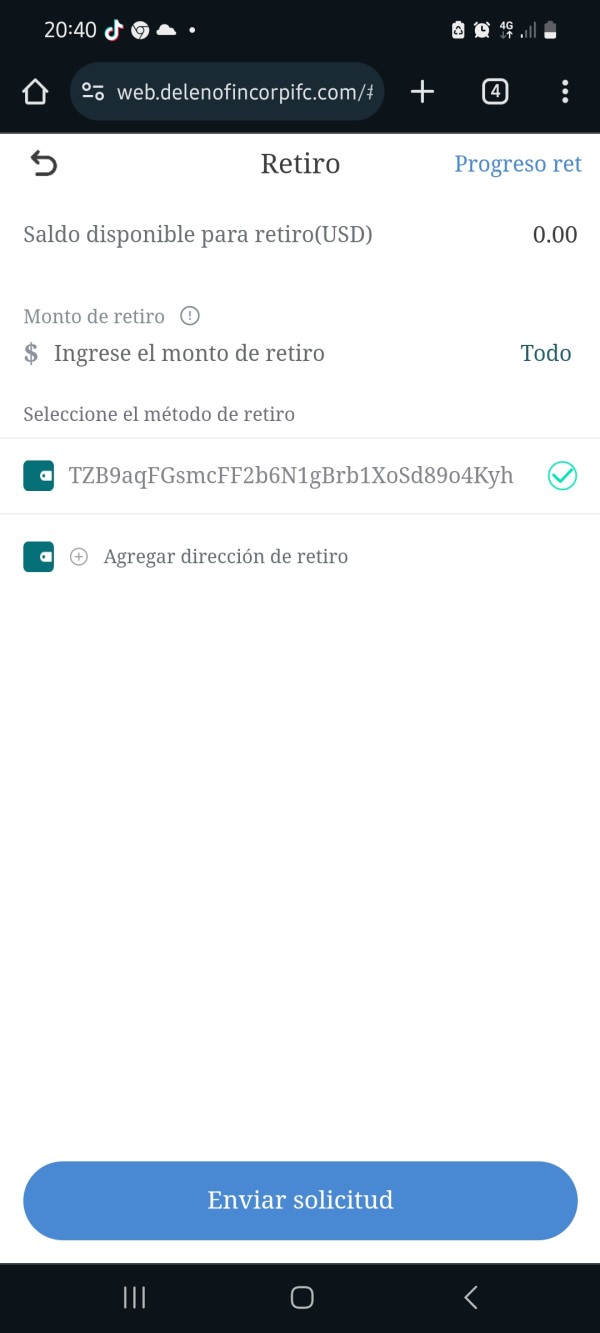 No permite realizar el retiro de mi inversión