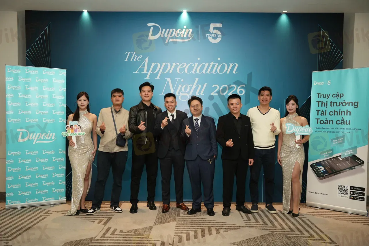 เมื่อวันที่ 8 กุมภาพันธ์ 2026 Dupoin จัดงาน Appreciation Night ที่ประเทศเวียดนาม โดยรวบรวมพันธมิตร แขกผู้มีเกียรติ และสมาชิกจากชุมชนนักลงทุนจำนวนมากเข้าร่วม งานนี้เป็นการพบปะช่วงต้นปีเพื่อยกย่องผลงานที่โดดเด่น พร้อมเสริมสร้างความเชื่อมโยงภายในระบบนิเวศการเทรดที่บริษัทกำลังพัฒนา