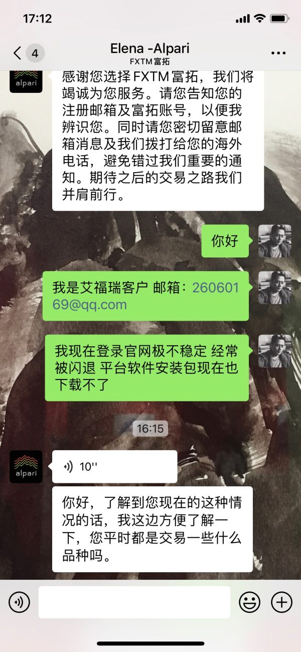 目前本人登陆爱福瑞平台会非常麻烦,经常被闪退,平台交易软件下载不了等。试着出金也无法确认完成。客服人员变成富拓人员,所有问题无法在平台上得到解决。故请帮助。谢谢!