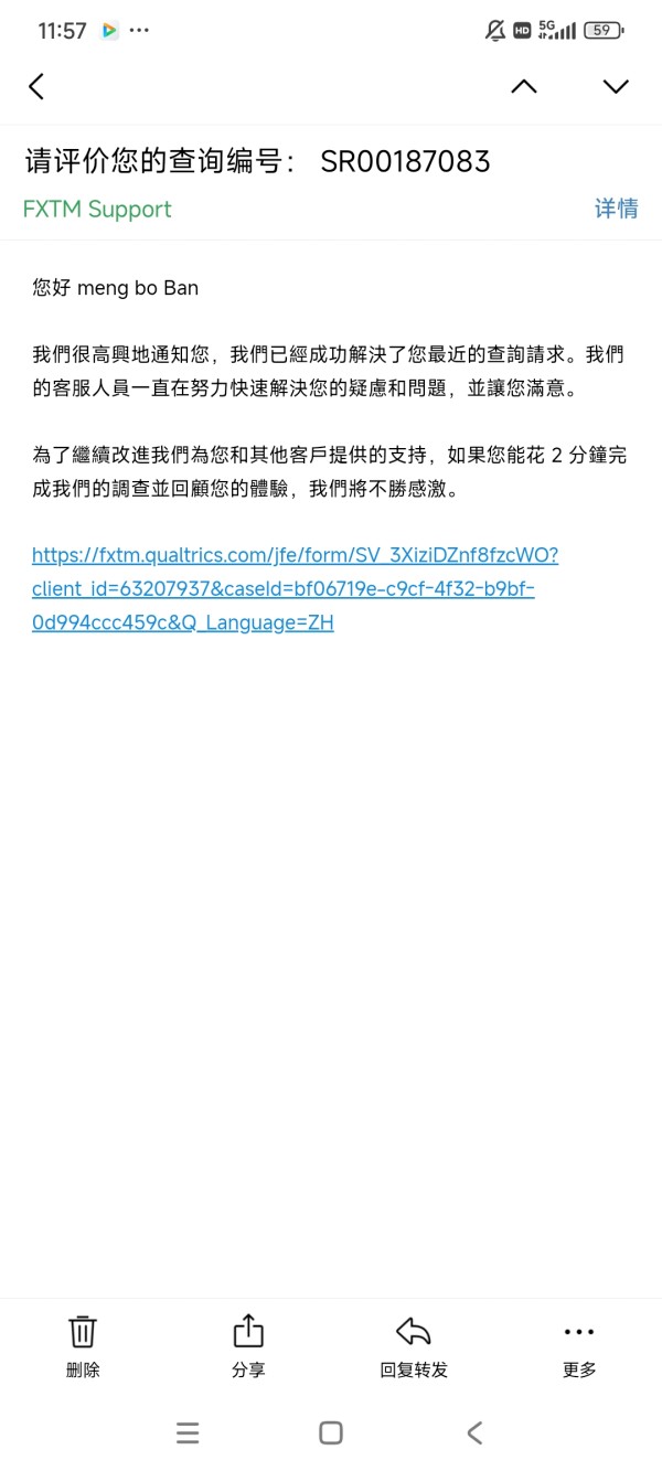 以前是懒得换,一直迁就至今。如今5年了,越想越气。最近被平台坑了25000人民币,不再隐忍。 富拓FXTM平台涉炸,网址经常登录异常,富拓公众号已经多次被封,客户经理企微号被封,之前我的出金涉炸银行卡被冻结至今,当时补偿我2000元。最近入金账户涉炸,银行卡被封18天了。他们说是我的问题???他们出入金找的交易商都是流动的,非常容易涉炸,导致用户出入金被封!!! 平台持续性滑点,最近又在我锁仓后强行平仓。之前多次锁仓后强行平仓无处投诉,这次终于可以借助软件投诉他们了。就是纯坑钱骗钱的平台,不止一次两次了。 5年老用户找他们客服投诉后遭冷处理,无人跟进。他们只是不停的发邮件说收到投诉了,然后过2天,再发个邮件说已解决。自问自答,根本无人跟进解决。 从未见过如此厚颜无耻的平台。邮件通知说收到投诉,然后邮件通知说已解决。???自问自答,自娱自乐,自我满足? 我肯定会不停举报它们,希望各位国人不要在这个平台上当被骗!!!