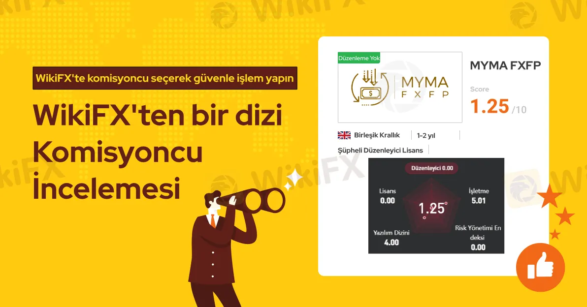 MYMA FX resmi lisans sahibi bir forex komisyoncusu değildir ve WikiFX araştırmalarına göre bu firmanın lisansı geçerli değildir. Ayrıca bu firmayla ilgili olarak son 3 ayda 17 farklı şikayet WikiFX yetkililerine ulaşmıştır. Bundan dolayı WikiFX bu komisyoncuya 1.25/10 gibi düşük seviye bir puan vermiştir.