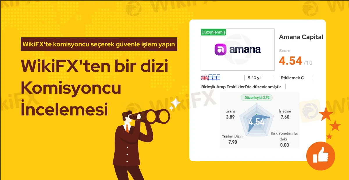 Amana Capital resmi lisans sahibi bir forex komisyoncusudur ve WikiFX araştırmalarına göre bu firmanın lisansı geçerlidir. Ancak bu firmanın lisansı offshore olarak bulunduğu için WikiFX bu komisyoncuya 4.54/10 gibi orta seviye bir puan vermiştir.