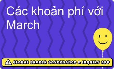 March Global Ltd. nhấn mạnh về spread chặt bắt đầu từ 0.0 pips, đặc biệt đối với cặp EURUSD, mà họ cho là trung bình chỉ 0.1 pips. Ngoài ra, họ cũng tuyên bố cung cấp spread gốc, có nghĩa là giá bạn nhìn thấy là giá bạn nhận được, không có bất kỳ phụ phí nào. Tuy nhiên, không có thông tin chi tiết hơn về spread và phí giao dịch trên trang web của họ.