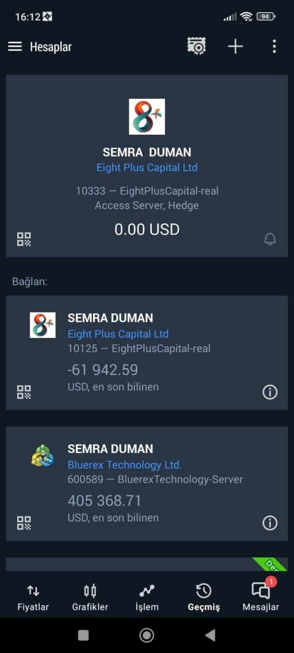 Rexen aracı kurumda olan hesabım müdürleri ve danışmamları tarafından yüksek lotlar ile işlem açıldığı için stop noktasına geldi hesabı hegleye aldılar. tayfun bey tarafından hesap sıkıntıya girdiği her an fonlama yapıldı ve sonrası hesaba ortağız denildi .Müdür olarak bildiğim tayfun bey tarafından hesabım bi süre sonra Eight plus şirketine taşındı hesap yönetimini kendisi yapmak istediği için aynı riskle yüksek lotlar açmaya devam edince hesap stop out oldu.hesaptan çekim yapmak istediğim zaman hesap terste bırakılıp stop aut edildi . Şuanda Eight plus şirketi hesabımı açmıyor benden fonlama istiyorlar (120.000 dolar ) . çok büyük zarardayım bana yardımcı olmanızı rica ediyorum.şuan ne rexen ne de eight plus şirketinden kimseyle iletişim kuramıyorum . Rexen 600589 Eight plus 10333 ve 10125 Hesaplar bu şekilde lütfen mağdur edildim hesapların incelenip ana paramın iadesini rica ediyorum
