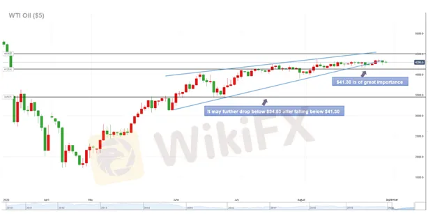 Đối với dầu thô WTI, giá dầu vẫn đang ổn định trên 41,30 USD, tầm quan trọng của ngưỡng hỗ trợ này, các nhà đầu tư cần cảnh giác với xu hướng giảm giá, nhưng một khi giá dầu vượt qua mức 41,30 USD, triển vọng thị trường có thể tiếp tục giảm xuống mức 34,50 USD. Nếu giá dầu có thể ổn định trên mức 41,30 một cách hiệu quả, thì vẫn có khả năng xảy ra một cuộc tăng tốc lên gần mức 45,0 USD.