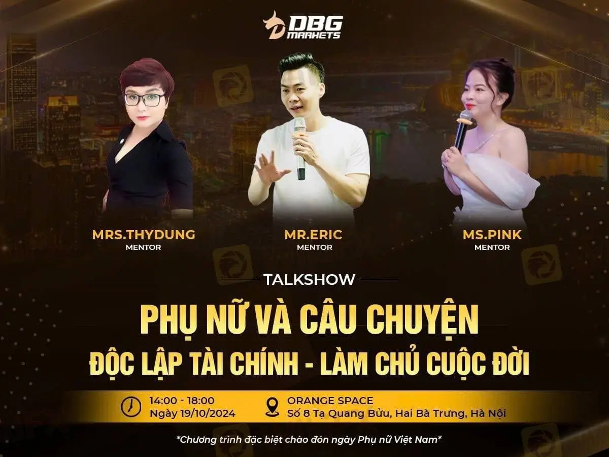 Vào ngày 19 tháng 10 năm 2024, DBG Markets tự hào tổ chức buổi tọa đàm trao quyền với chủ đề “Phụ nữ và độc lập tài chính - Làm chủ cuộc sống của chính mình”tại Orange Space, Hà Nội. Sự kiện này được thiết kế đặc biệt nhằm kỷ niệm Ngày Phụ nữ Việt Nam, nhằm tôn vinh và trao quyền cho phụ nữ làm chủ vận vận mệnh tài chính của mình.
