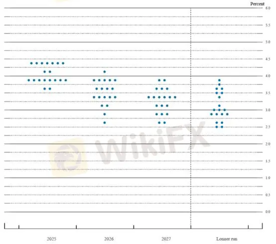 Biểu đồ dot plot thu hẹp kỳ vọng cắt giảm lãi suất vào năm 2026 và 2027.