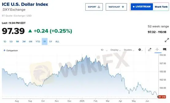 (Hình 1: Chỉ số Dollar Index tiếp tục phá đáy; nguồn: CNBC)